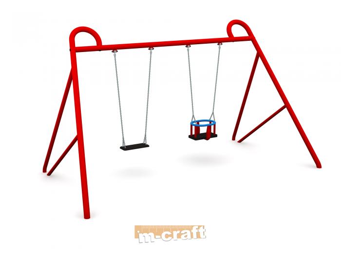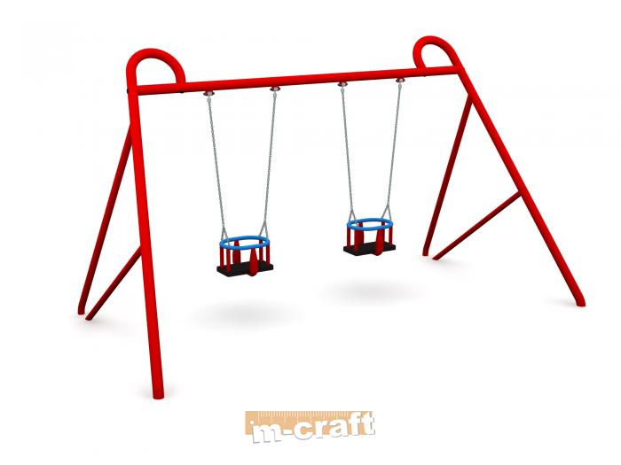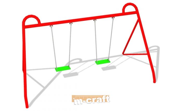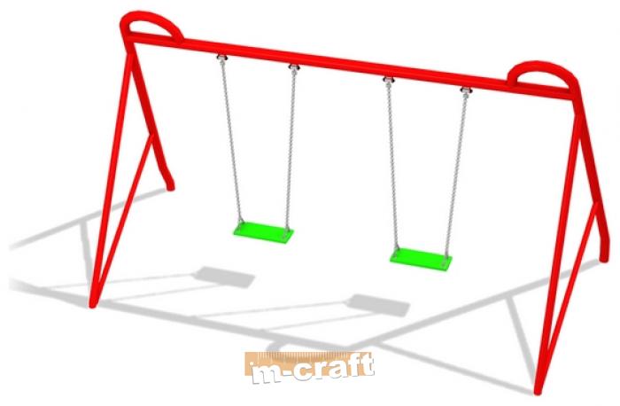 Double Flat Seat Swing Set, h 2 m, In-Ground Mount, Hot-Dip Galvanized & Painted Steel & Plastic